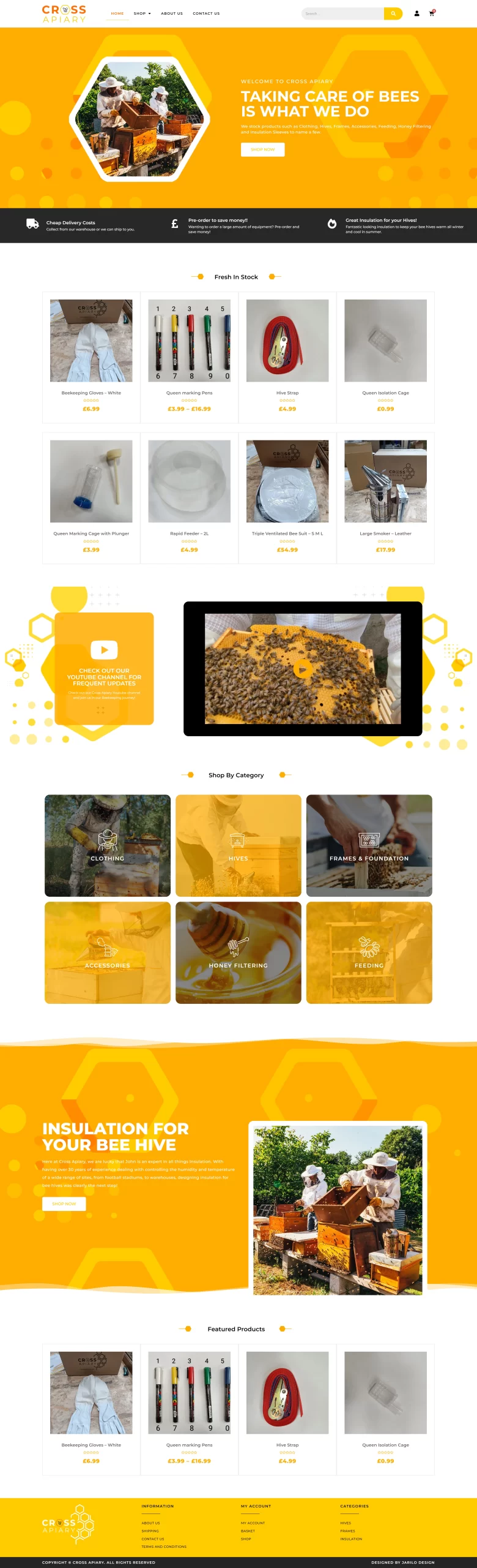 Cross Apiary is a company that sells Bee Hive Insulation as well as other pieces of beekeeping accessories and clothing. This was a new venture for the business owner, Thomas Cross, which meant we were starting the project from the ground up.